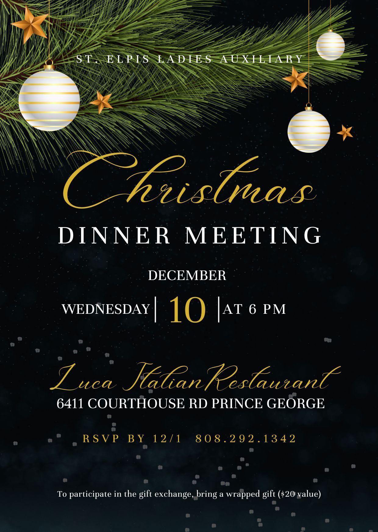 Wednesday, December 10 :: Ladies Auxiliary Christmas Dinner & Gift Exchange