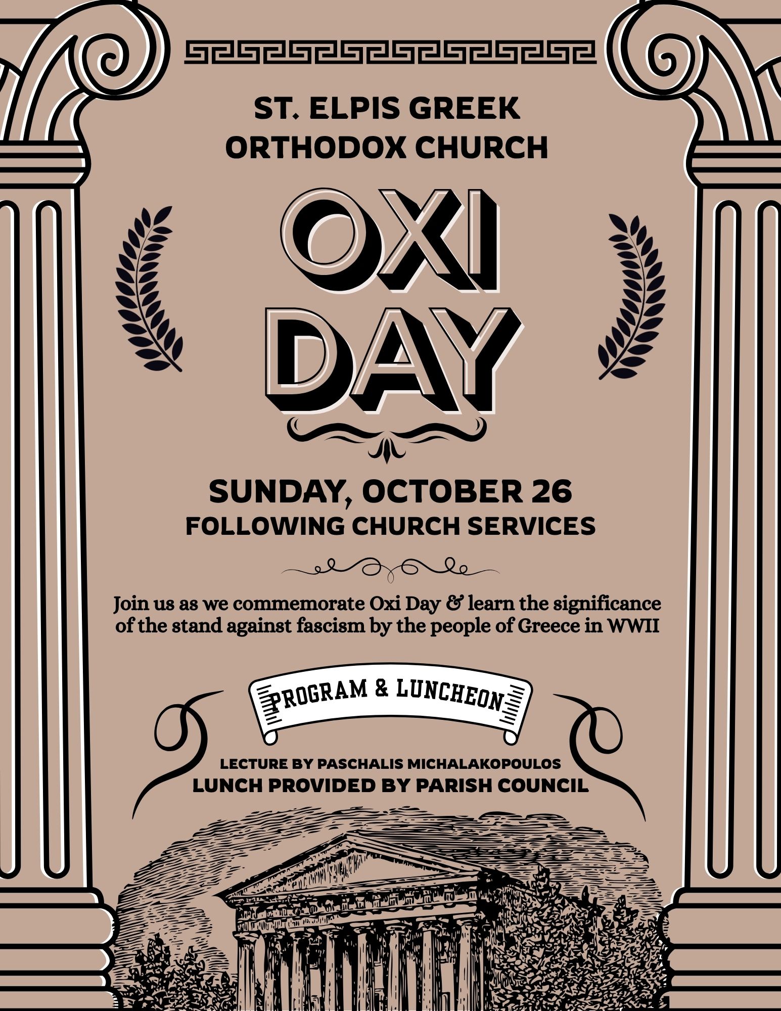 Paschalis Michalakopoulos will give a lecture on the history of Oxi Day, the fight against Nazi Germany and Fascist Italy during WWII in Greece.