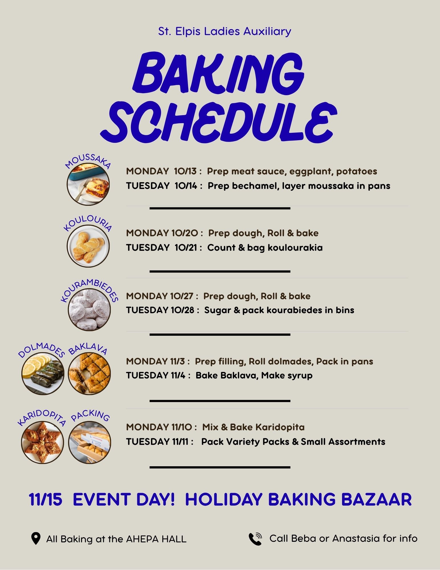 Ongoing through November 15 :: Baking Schedule