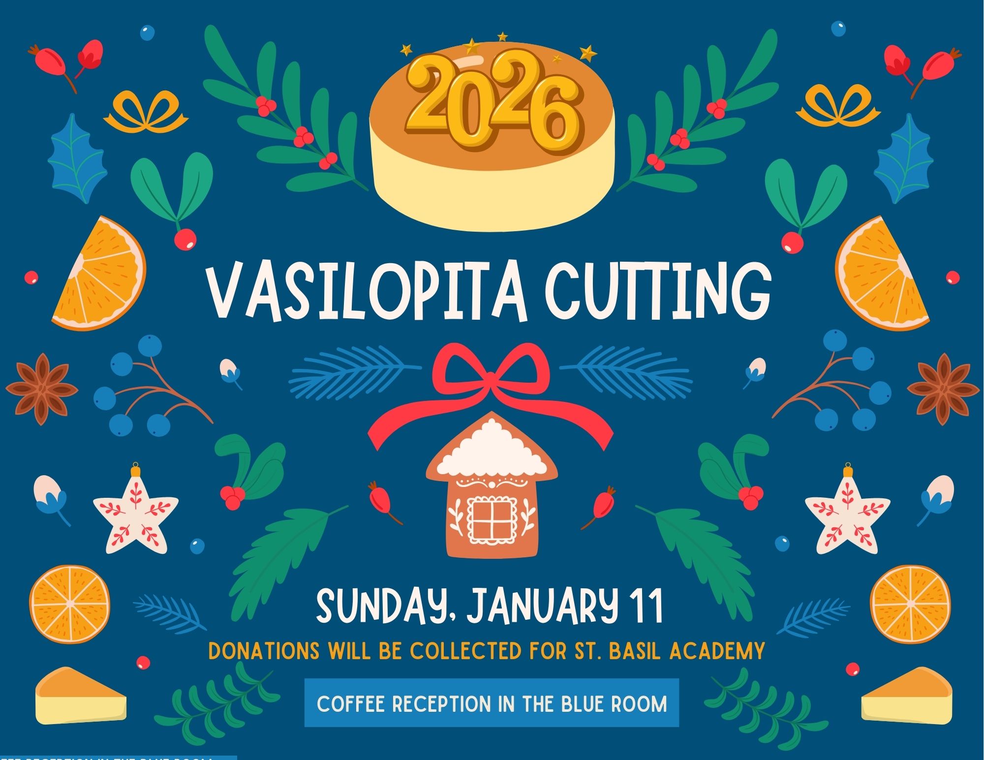 Orthros at 9:00 AM, Divine Liturgy at 10:00 AM, followed by our fellowship coffee hour in the Blue Room.